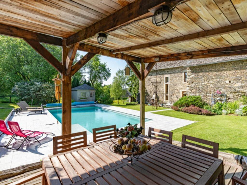 La partie grange et étables, laissée volontairement à l’état brut, développe plus de 230 m² et ouvre la porte à une multitude d’aménagements selon vos besoins et votre vision. À cela s’ajoutent une annexe de 40 m², deux écuries, une piscine chauffée et une pâture de plus de 30 ares.