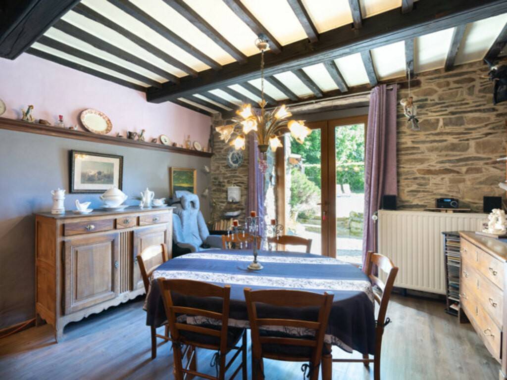 La bâtisse principale conserve tout le charme de l’ancien (poutres apparentes, carreaux de ciment, menuiseries en chêne, charpente remarquable) et se compose actuellement de deux logements de 2 chambres, chacun avec greniers aménageables. L’un d’eux est exploité en gîte (5 personnes) et génère un revenu locatif net d’environ 10 000 €/an.