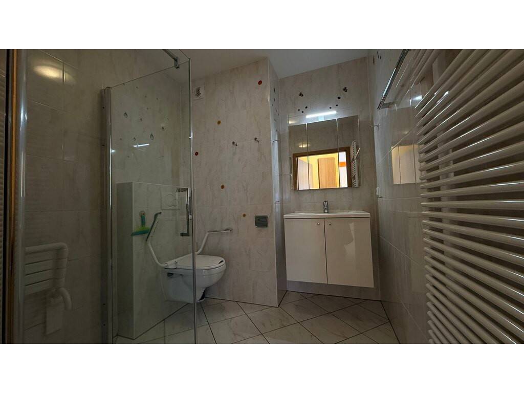 BEL APPARTEMENT au 2e étage d'une résidence pour personnes âgées (>55 ans) , se composant comme suit : hall d'entrée avec placards encastrés, cuisine entièrement équipée ouverte sur le living avec accès sur balcon de 3,90 m2, une chambre à coucher, salle de douche avec WC.