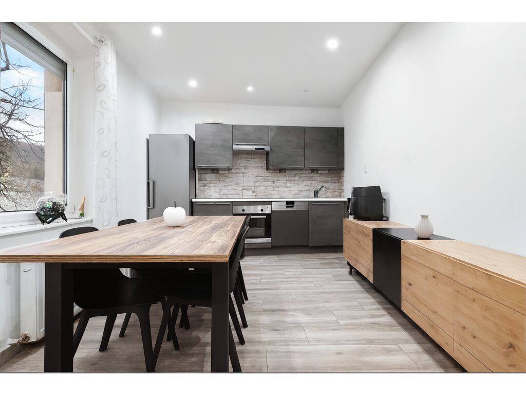 Die Wohnung befindet sich im 1. Obergeschoss eines Gebäudes aus dem Jahr 1911 und wurde 2023 vollständig renoviert. Sie bietet ein angenehmes Wohnambiente, das modernen Komfort mit dem Charme des Alten verbindet ? mitten im Herzen von Rumelange.