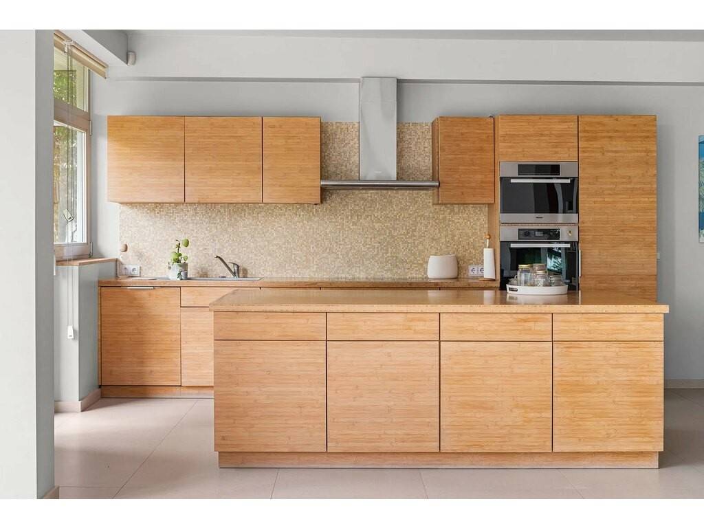 Kitchen and appliances: Custom-made bamboo kitchen with appliances.