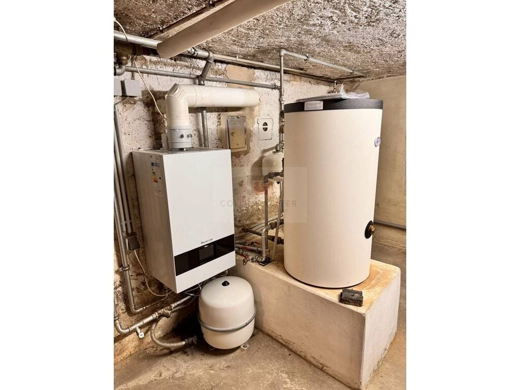 Haus mit Untergeschoss, Hochparterre, Obergeschoss und Dachgeschoss. Traditionelle Bauweise aus Naturstein, Schieferdach. Gaskessel, der 2025 ersetzt wurde. Zentralheizung über Radiatoren.