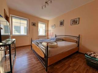 1. Stock: Eingangshalle, 2 Schlafzimmer, eines davon mit Ankleidezimmer, separate Einbauküche mit Zugang zur Loggia, Wohnzimmer mit Zugang zur Loggia, Abstellraum mit Waschmaschinenanschluss, separates WC und Badezimmer mit Badewanne und Dusche.