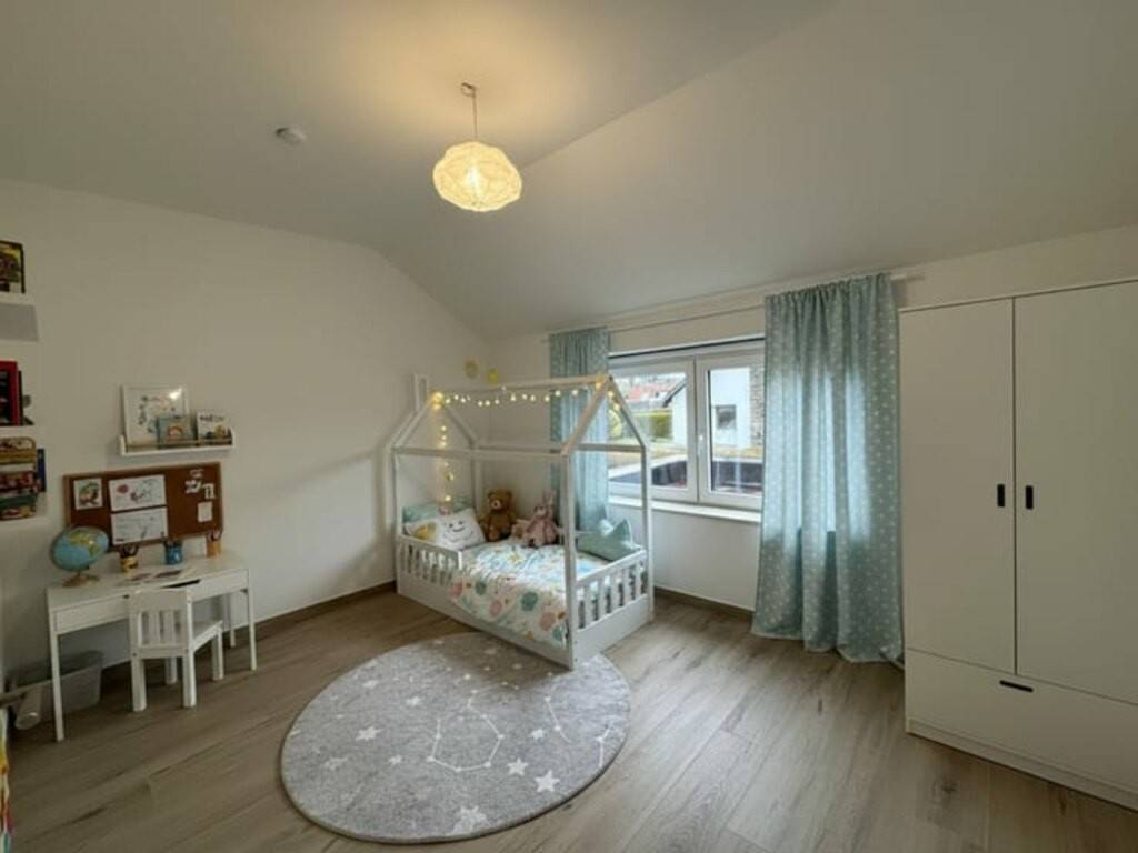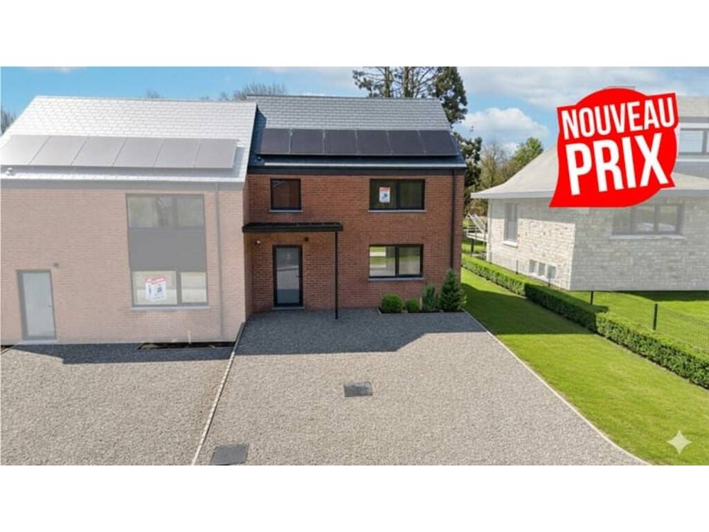 Située à Marloie, cette maison neuve s’insère dans un quartier résidentiel bien établi, apprécié pour sa tranquillité et sa proximité immédiate avec les infrastructures de la ville de Marche-en-Famenne. L’environnement est structuré, avec une desserte aisée vers les principaux points d’intérêt de la région. La gare de Marloie est accessible à +/- 700 mètres, ce qui permet une liaison rapide vers Libramont, Namur ou Liège. La N4 se rejoint en +/- 3 minutes. Plusieurs espaces verts et équipements culturels sont également accessibles à pied. Le bien présente une configuration trois façades développant une surface habitable de +/- 130 m² sur un terrain de +/- 2,90 ares. La terrasse orientée au nord est intégrée au volume bâti. Le projet ne prévoit pas de garage, mais bénéficie d’un espace de stationnement privatif à l’avant. Au rez-de-chaussée, le hall d’entrée distribue un séjour de +/- 40 m² comprenant un espace salon et salle à manger, une cuisine ouverte et une buanderie. À l’étage, le hall de nuit dessert une chambre parentale de +/- 14 m², deux autres chambres de +/- 12 m² et +/- 11 m², ainsi qu’une salle de bain équipée d’une douche. L’équipement technique comprend un système de chauffage central au gaz et 6 panneaux photovoltaïques. Le bâtiment présente une performance énergétique de catégorie A