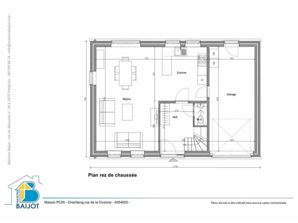 Hall d’entrée WC séparé Spacieux séjour avec cuisine ouverte super équipée (± 38 m²) Garage 1 voiture avec espace buanderie (± 21 m²) Accès direct au jardin