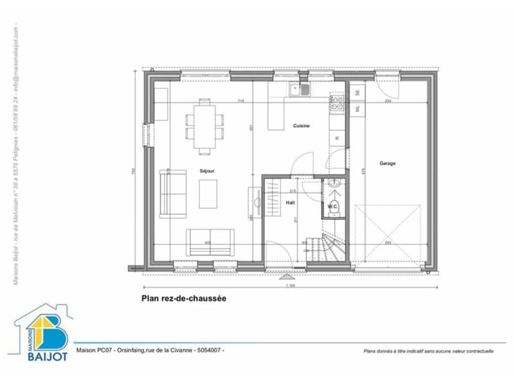 Au rez-de-chaussée : • Un hall d’entrée • Un WC invité • Un espace cuisine ouvert sur un beau séjour lumineux • Un garage avec espace buanderie