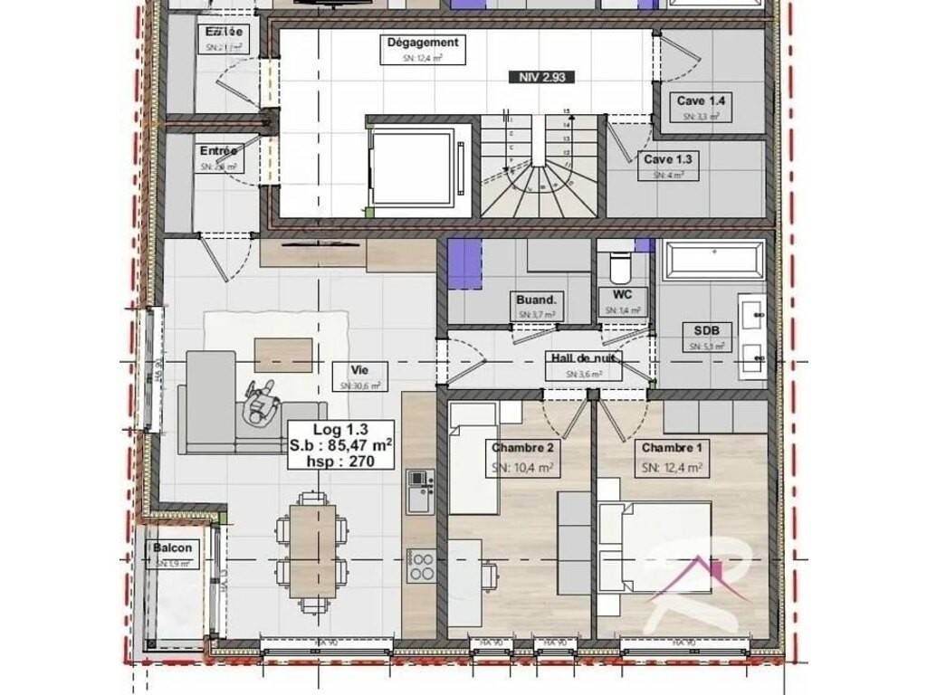 Une cave privée de 4m² est également disponible au même niveau, avec un accès depuis le hall des communs ;