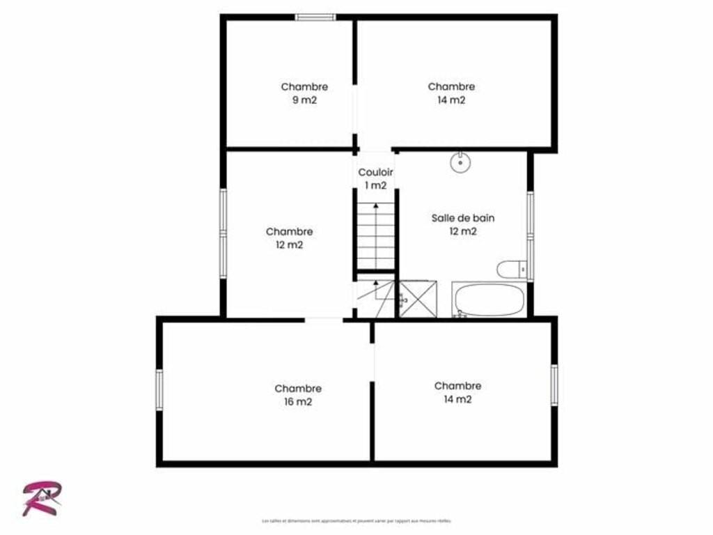 Au 1er étage : Un sas de nuit, une spacieuse salle de bain (douche, baignoire et évier) de 12m², 2 chambres mansardées avec dressing attenant (poss. 2 chambres supplémentaires) et un bureau en enfilade avec une d'entre elle ;