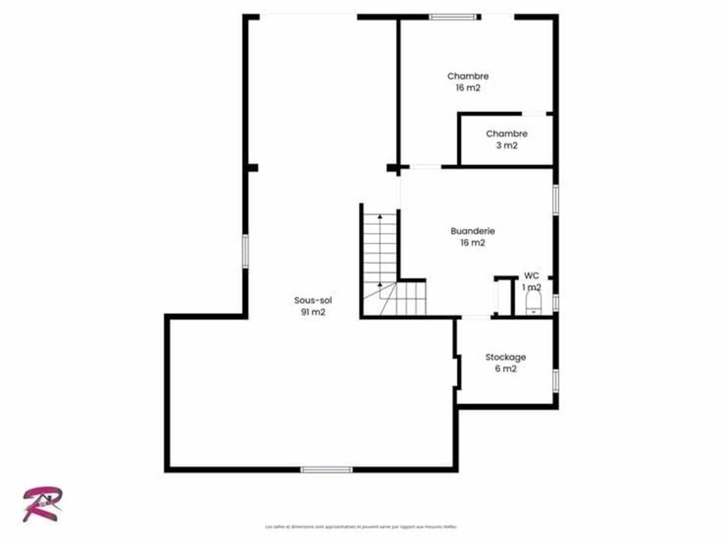 Caves : Un garage min 2 voitures (au niveau -1) de 91m² et 42m² de caves de stockage (buanderie, WC, stockages) avec accès au jardin ;