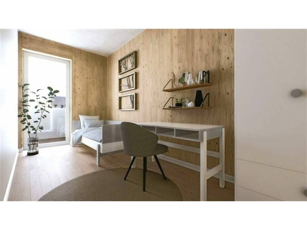 Finitions haut de gamme : plancher type parquet thermique et acoustique, matériaux écologiques et recyclés, carrelages muraux chaleureux, bois CLT visible ou en finition lisse.