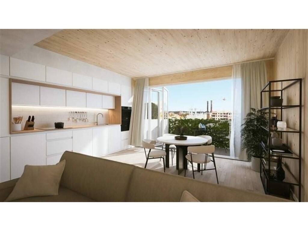 Finitions haut de gamme : plancher type parquet thermique et acoustique, matériaux écologiques et recyclés, carrelages muraux chaleureux, bois CLT visible ou en finition lisse.