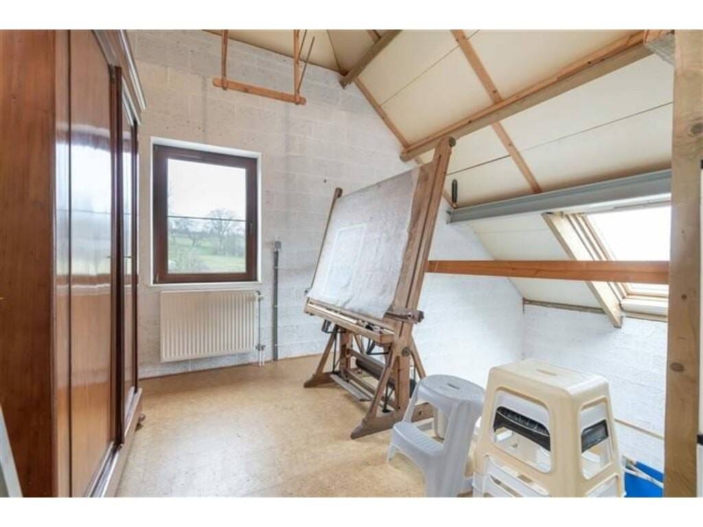 À l’étage, 3 chambres (dont une partiellement arrondie, superbe !), un espace polyvalent (bureau, atelier ou dressing), ainsi qu’une salle de bain. Une mezzanine au-dessus de l'atelier et un grenier accessible offrent encore des possibilités d’aménagement.