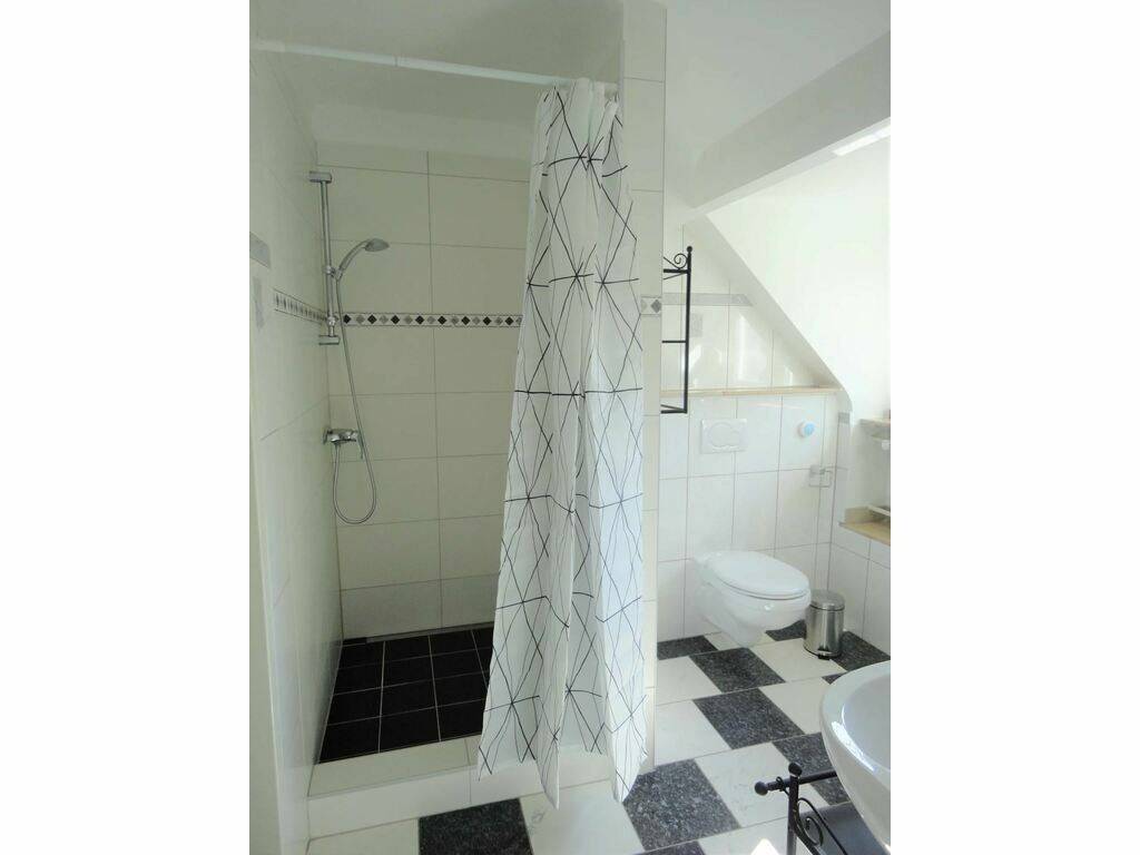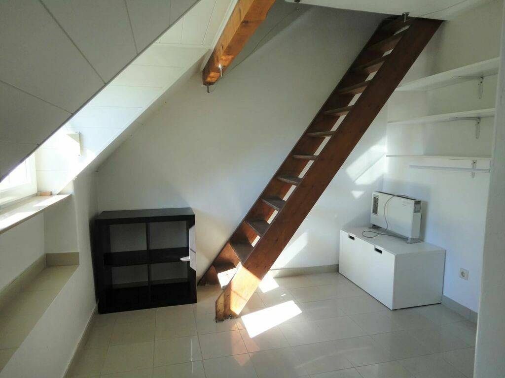 - 1 shower room, with window, (large tiled shower, washbasin, wc), giving access to 1 storage room of +/-12.5m2, connections for the Ariston washing machine, staircase to the attic (communal areas).