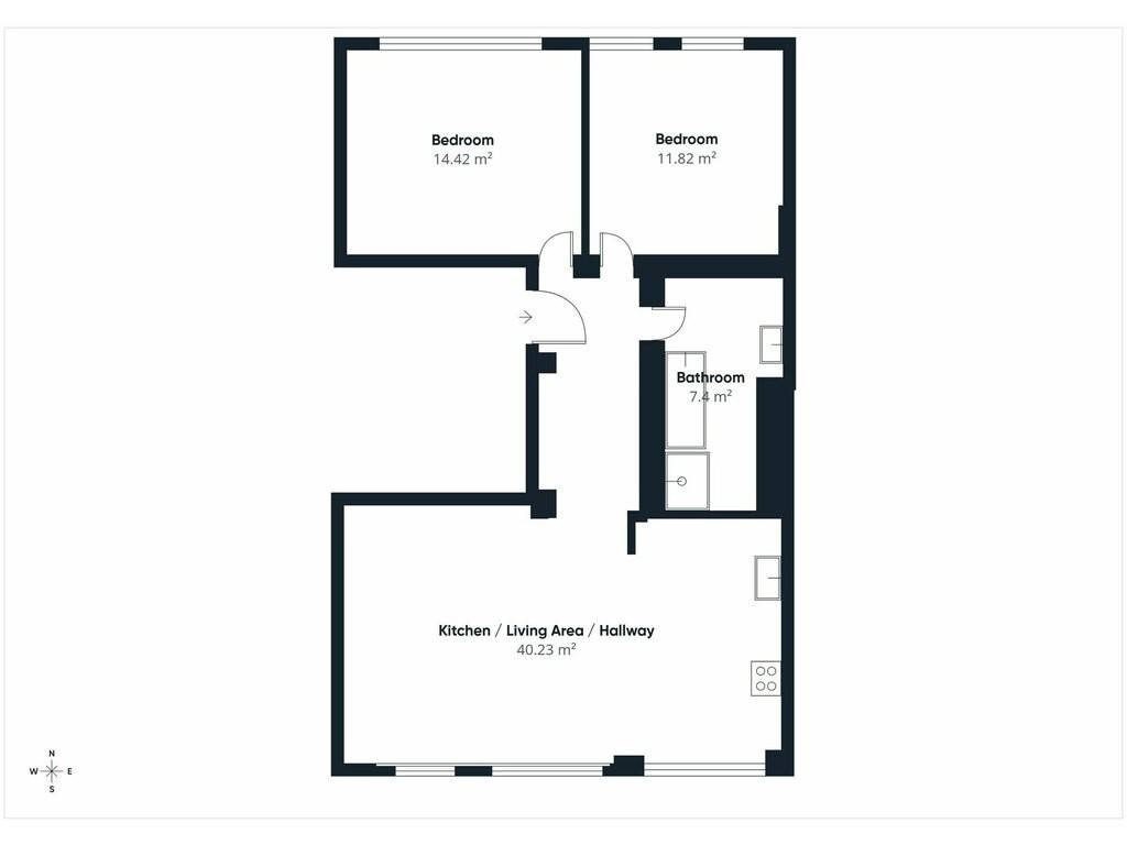 Sanitary facilities: 1 shower - 1 bathtub - 1 non-separate toilet - laundry area in the apartment.