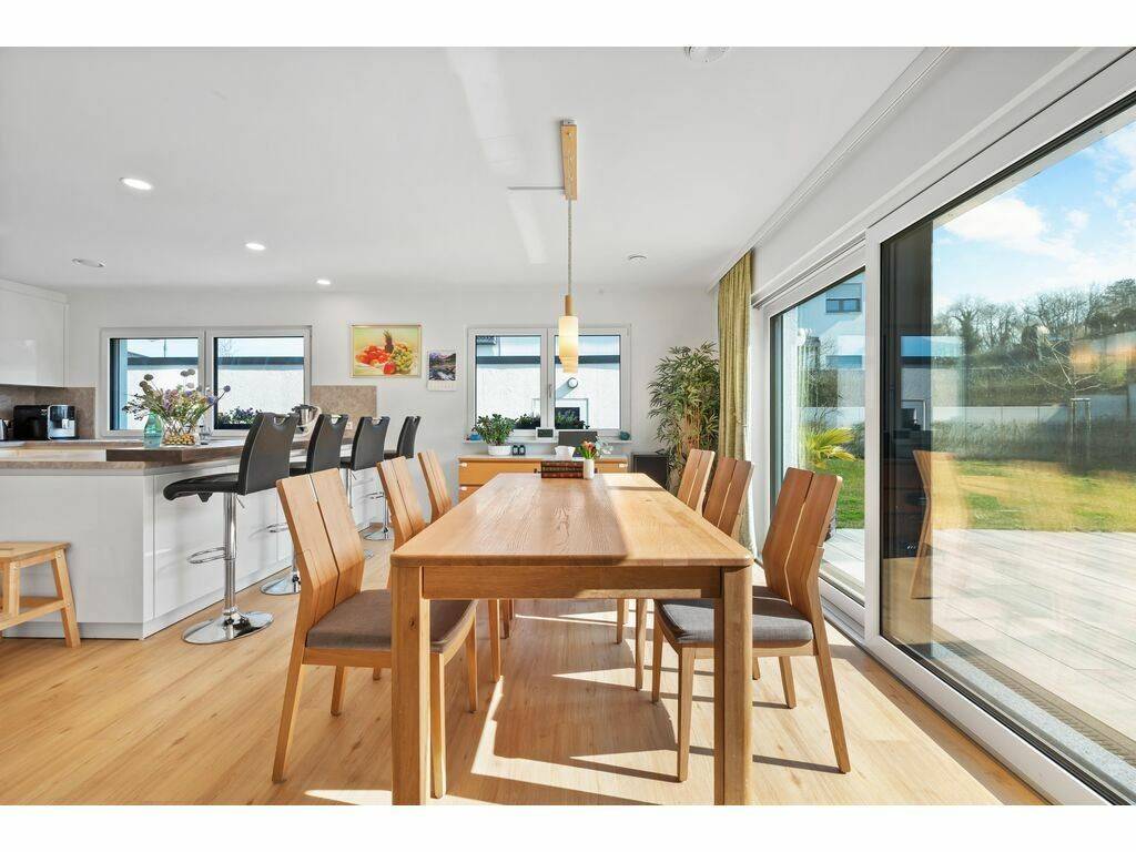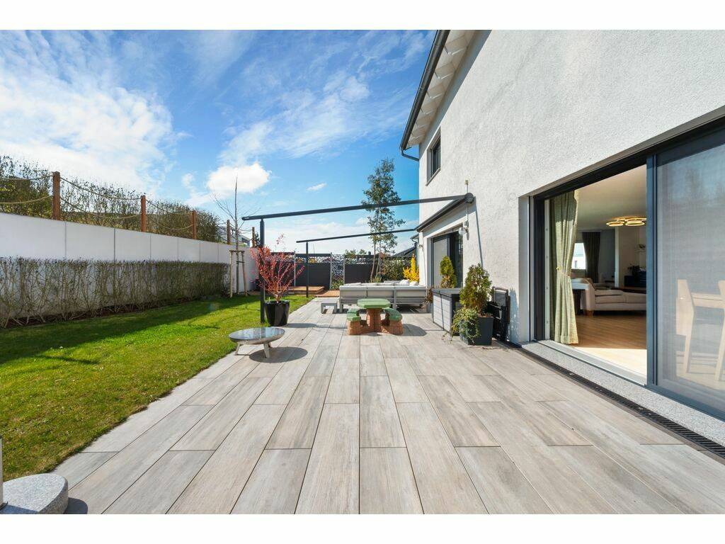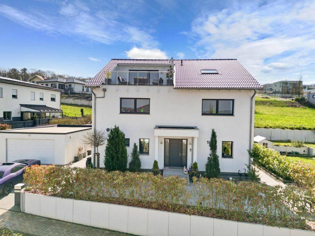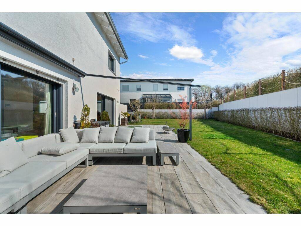 Architektur mit Blick auf den Horizont Das 2020 auf einem 5 Ar großen Grundstück erbaute Haus mit 328 m² Wohnfläche (250 m² Wohnfläche) besticht durch sein natürliches Licht und sein raffiniertes Design. Die erhöhte Lage bietet einen atemberaubenden Panoramablick auf die Mosel und die luxemburgischen Weinberge – ein wahres Gemälde, das sich mit den Jahreszeiten wandelt.