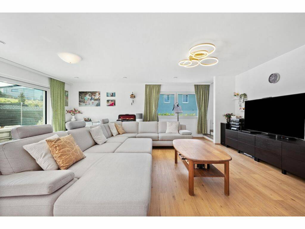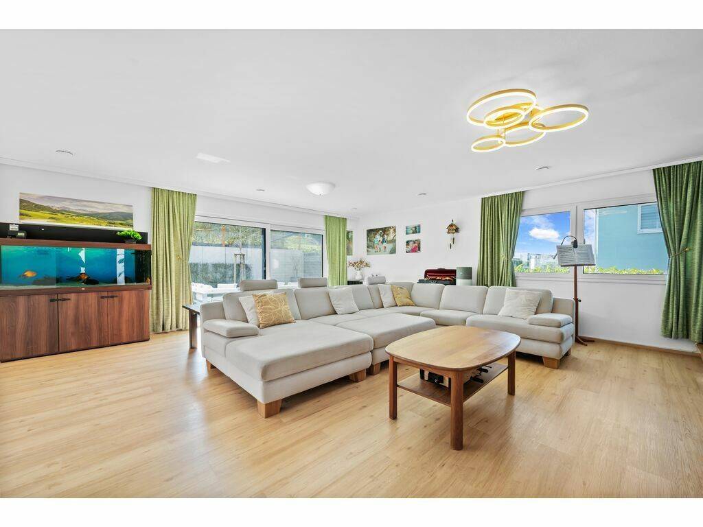 • Großzügiger Wohnbereich: Ein lichtdurchflutetes Wohnzimmer mit Zugang ins Freie.