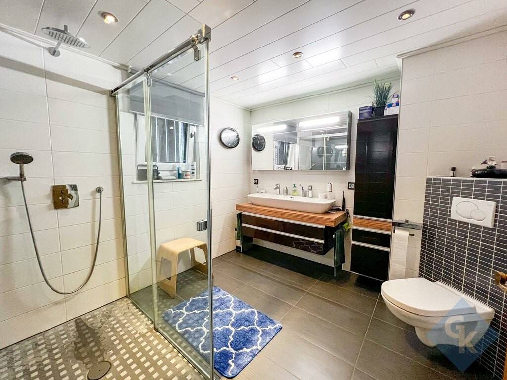 Description de la maison d'une surface utile de 200 m²:sous-sol: garage (32 m²); cave (15 m²). Rez-de-chaussée: hall (17.91 m²); chambre (15.06 m²); bureau (9.82 m²) salle de douche + WC (7.80 m²); buanderie (2.92 m²).1er étage: hall (7.05 m²); living (33.43 m²); WC séparé (1.45 m²); salle à manger (14.43 m²); cuisine/salle à manger (23.35 m²).2ième étage: 2 chambres (10.18 m²) + (10.29 m²); salle de douche + WC (4.28 m²).