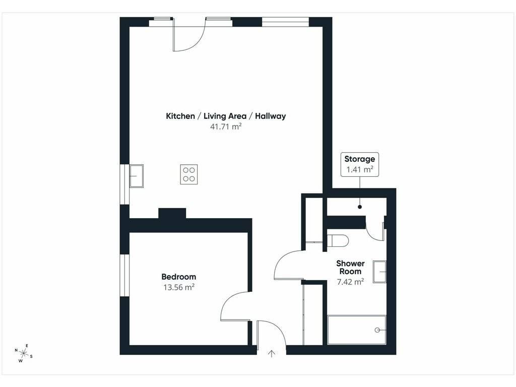 Layout: Entrance hall leading to the spacious living/dining room with open-plan kitchen (41.7 sqm) - access to the terrace with unobstructed views of the valley - large bedroom (13.6 sqm) - shower room with walk-in shower (7.4 sqm) - utility room (1.4 sqm) Outside: large terrace (+/- 14 sqm)