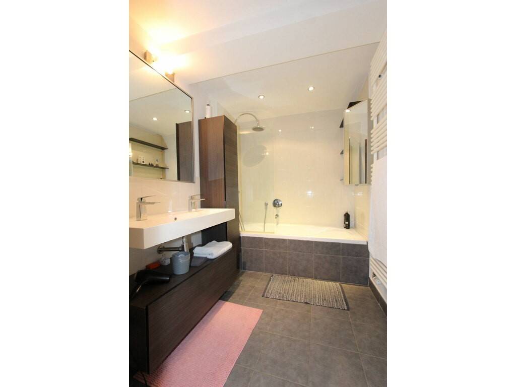 Complètent l'appartement une grande salle de bains (lavabo et baignoire) et un WC séparé. Au fond du couloir vous disposerez d'un débarras dans lequel se trouvent la machine à laver et le séchoir, tandis que au sous-sol vous aurez deux caves.