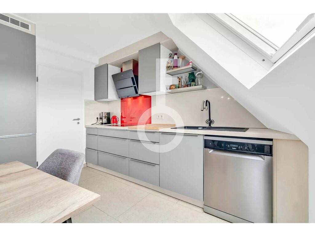 Located on the 3rd and 4th floors, this recently renovated property features the following: - Spacious entryway - Fully equipped kitchen, open to the living/dining room - 2 bedrooms - Shower room with toilet - Utility room with connections for a washer and dryer - Storage space / walk-in closet