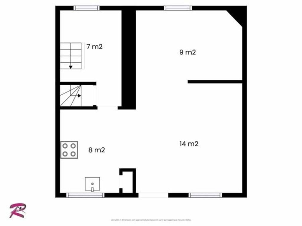 Au rez-de-chaussée : salon, salle-à-manger, cuisine ;