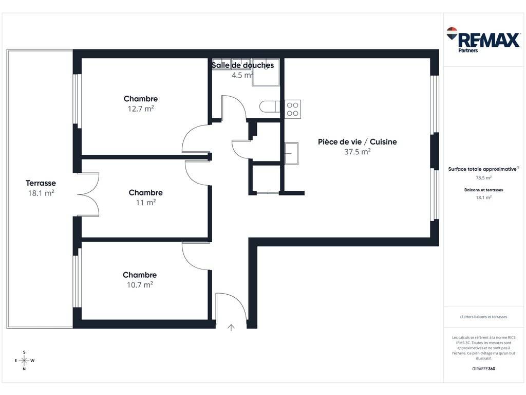 L'appartement dispose également d'une terrasse privative d'environ 18 m², offrant un espace extérieur appréciable.