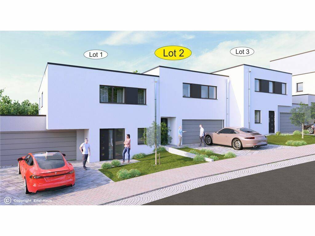 Unser Baugebiet in Peppange besteht aus Einfamilienhäusern, einem Mehrfamilienhaus sowie 11 Reihenhäusern und 5 exklusiven Villen. Im Detail sehen Sie hier das Lot 2.