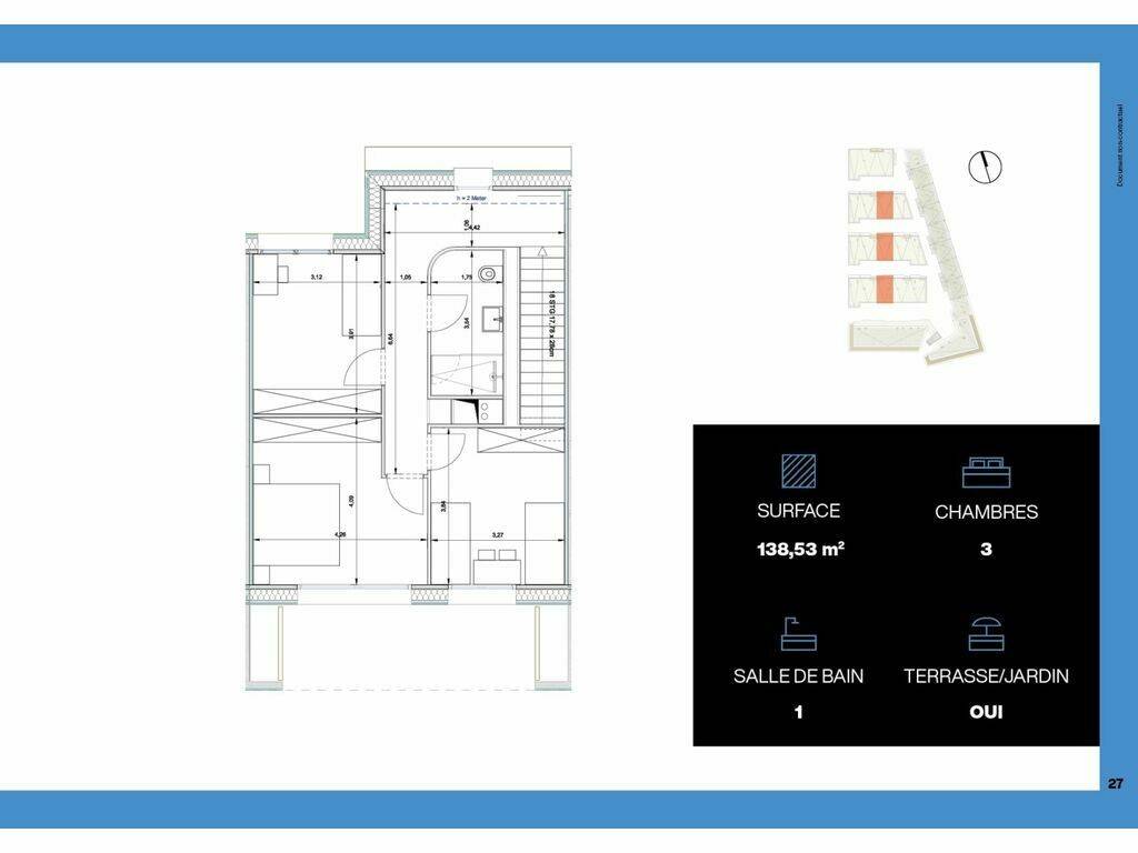 Le Fonds du Logement vous propose en vente abordable un Triplex (50F) d'une surface de 138,53 m² de 2024, comprenant 3 ch-à-c, une salle de douche, WC séparé, cuisine équipée ouverte sur séjour, un espace extérieur de 22,28m² et un espace de stockage.