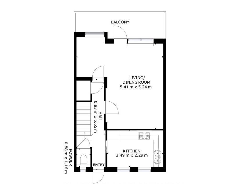 Hall d'entrée accueillant WC séparé Cuisine indépendante Salon et salle à manger lumineux Accès direct à la terrasse