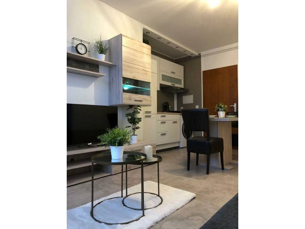 Comprenant : hall d'entrée ouvert donnant accès à la pièce principale avec cuisine entièrement équipée, salle de douche avec W.C. et machine à laver séchante, cave.
