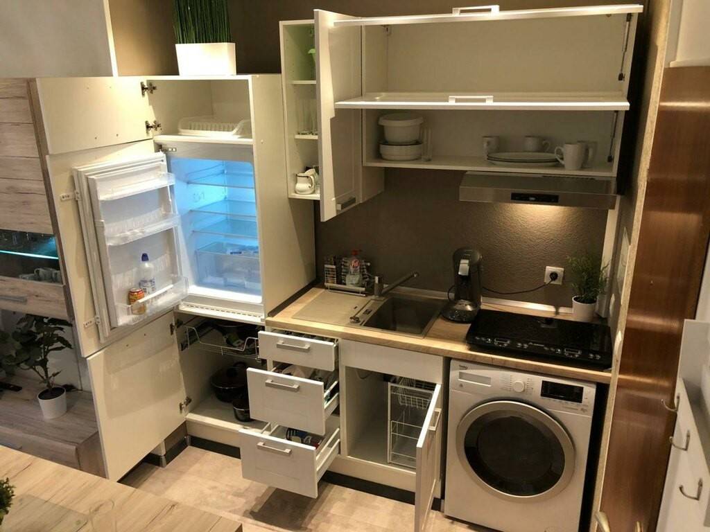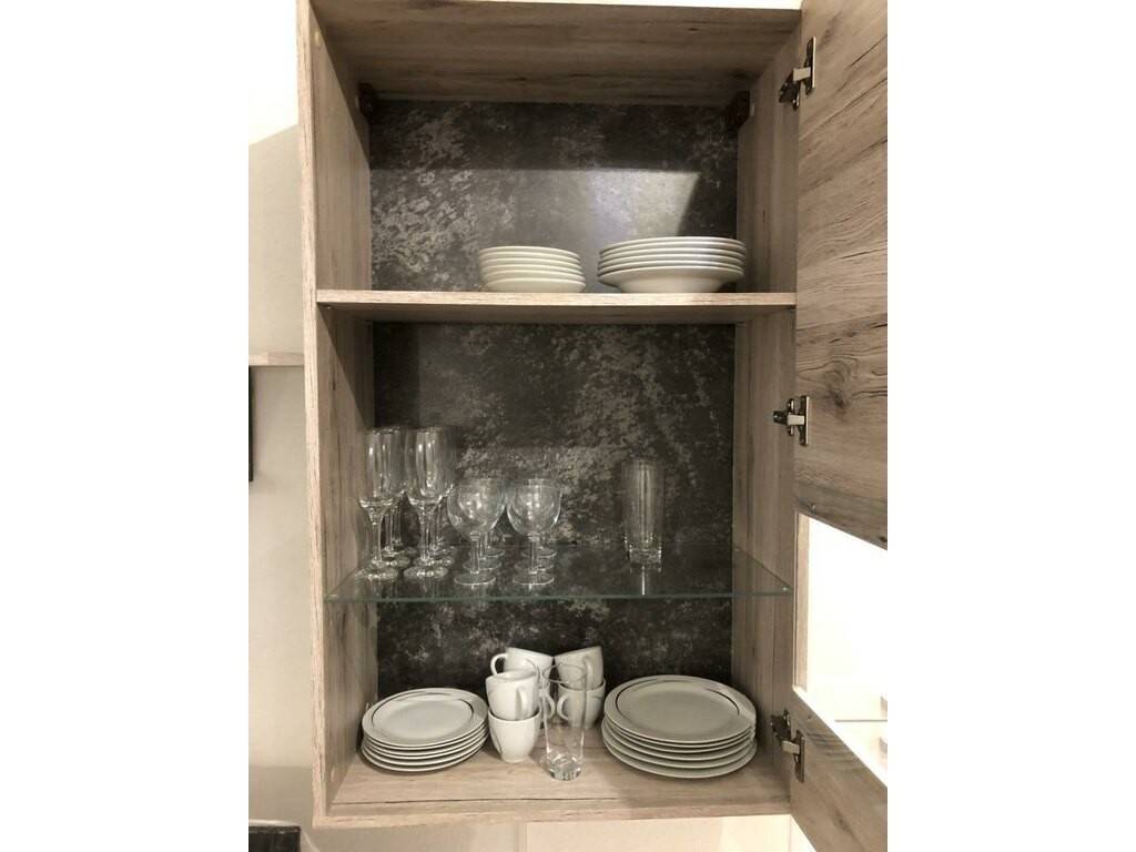 • une cuisine complètement équipée avec four/micro-ondes, hotte, frigo, machine à café, casseroles, poêles, divers outils de cuisine et vaisselle complète pour 6 personnes, 1 table avec rallonge, 4 chaises (dont 2 se trouvant à la cave);