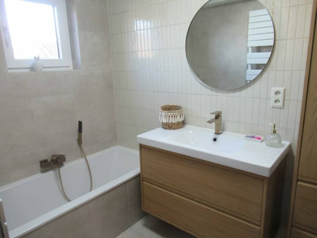 Rez-de-chaussée : Hall d’entrée Garage 1 voiture, local réserve avec accès espace pelouse Local WC Living et salle à manger d’environ 40 m² avec espace cuisine équipée récente (2022) avec accès vers l’extérieur Local WC 1 chambre à coucher ou bureau (16m2) Salle de bain récente de 2023 avec baignoire et lavabo 1er étage : Hall de nuit Salle de bain (douche et lavabo) 3 grandes chambres (28m2) Parquet en chêne Divers : Exposition plein sud Chauffage central au mazout Nouveaux châssis en aluminium et PVC de 2023 Ardoises naturelles 25/35 PEB C Très belle situation, quartier résidentiel A 600 mètres du centre d’Habay-La-Neuve Accès vers l’autoroute à 3 kilomètres