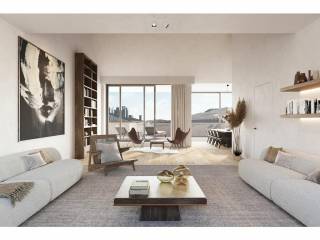 Der Aufzug führt direkt ohne das Penthouse und führt zu einer 8 m² großen Eingangshalle, in der Sie mit einer Garderobe empfangen werden können, und öffnet sich zum Wohnzimmer mit seiner Deckenhöhe von ± 5,5 m.
