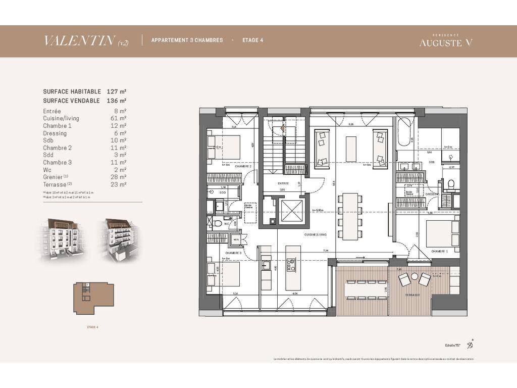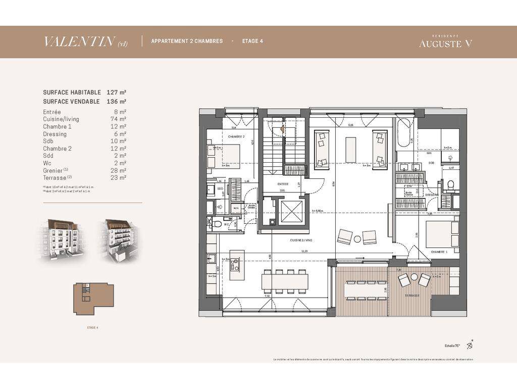 Die einzige Wohnung im obersten Stockwerk dieser neuen Residenz mit modernen und zeitlosen Linien, diese kreuzende Wohnung von ± 127 m² Wohnfläche wird Sie mit der Qualität ihrer Ausstattungsmaterialien verführen (optische Oberflächen in den Spezifikationen enthalten, ausgenommen Küche), seine Leuchtkraft und seine herrliche Südterrasse.