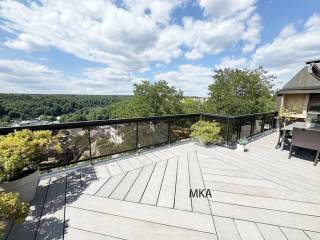 € 2.450.000Dreizimmerwohnung 2, Rue Tony Neuman, Limpertsberg, LuxemburgPrächtige Wohnung mit Ost-West-Terrasse zum Verkauf auf den Höhen von Limpertsberg (Tony-Neuman-Straße). Das Objekt befindet sich im 7. und 8. Stock einer Residenz in ausgezeichnetem Pflegezustand und ist wie folgt aufgeteilt: Untere Ebene (7. Stock): Große Eingangshalle mit Panzertür (gesichert), Garderobe und Toilette mit Waschbecken. Große Empfangsräume mit Esszimmer, Wohnzimmer mit Ethanol-Kamin und Bibliotheksecke mit kleinem Balkon sowie großen Schiebetüren, die auf eine wunderschöne 43 m2 große Terrasse mit Grillecke und Cagibi führen. Schöne, geschlossene Einbauküche mit Balkon Obe