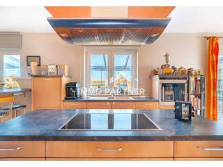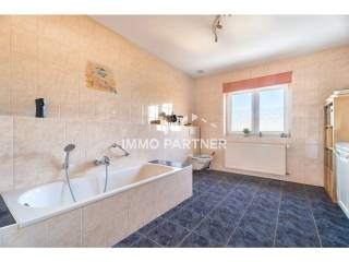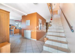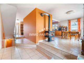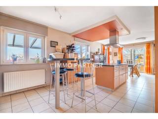 € 750.000Einfamilienhaus 18, An de Pëtzen, Boxhorn, Maulusmuehle, WincrangeImmo Partner freut sich, Ihnen dieses Doppelhaus mit integrierter Wohnung in Boxhorn auf einem 6 Ar großen Grundstück anbieten zu können. Dieses geräumige Haus mit einer Gesamtfläche von 330 m² (davon 205 m² Wohnfläche) wurde 2003 erbaut und setzt sich wie folgt zusammen: Untergeschoss: Eine Diele von 11,07 m²; drei Kellerräume von 8,12, 35,70 und 45 m² sowie ein Heizungsraum von 8,89 m². Erdgeschoss: Eine Eingangshalle von 6,50 m²; ein Duschbad mit WC von 3,92 m²; ein Wohnzimmer mit Holzofen (22,20 m²); eine Einbauküche (28,20 m²) mit Abstellraum (3,15 m²); ein Esszimmer (14,70 m²); ein