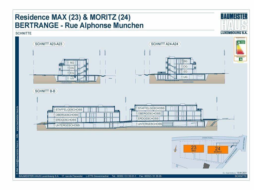 Construction d'une nouvelle résidences de 2 bâtiments dans la rue Alphonse Munchen dans le nouveau lotissement „Erzelt“ à Bertrange.