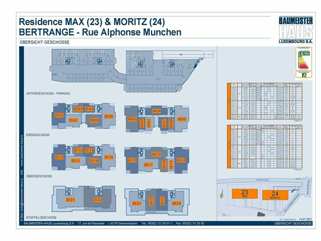 Le bâtiment Moritz comprend 17 unités ayant une surface nette d’habitation de 37 à 133 m² réparties sur 3 étages.