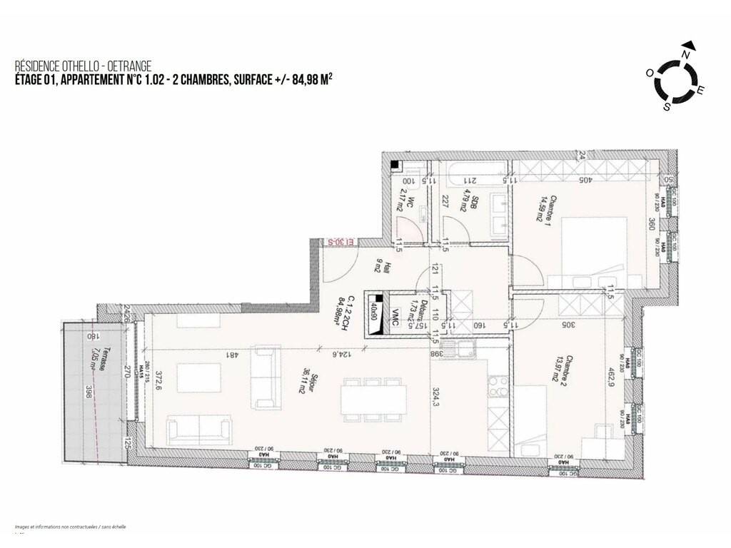 Espace immo vous présente cet appartement 2 chambres, dans la résidence Othello à Oetrange,