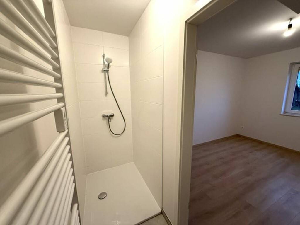L’intérieur comprend un séjour de +/- 24,5 m², une cuisine de +/- 12,5 m² et une buanderie de +/- 6 m². Le rez-de-chaussée dispose également d’une chambre de +/- 11 m² et d’une salle de douche de +/- 3 m². À l’étage, on trouve une chambre parentale avec dressing de +/- 18 m², deux autres chambres de +/- 16 m² et +/- 13 m², ainsi qu’une salle de bain de +/- 9 m².