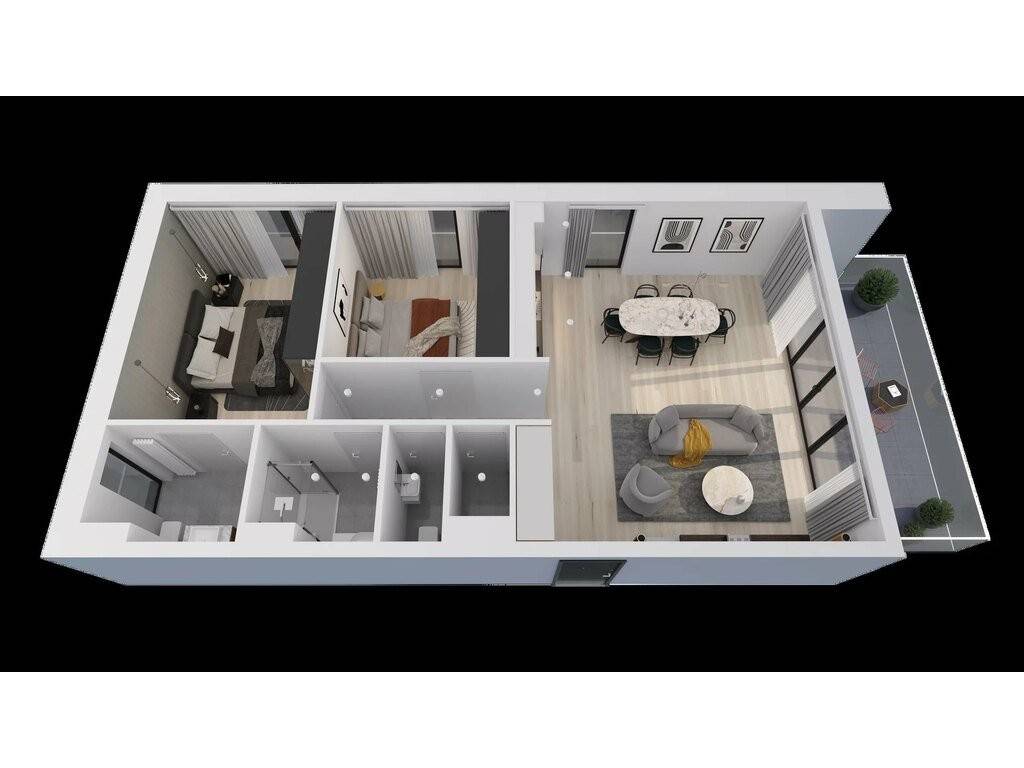 B.3.2 - Beau penthouse 2 chambres, d'environ 83m2 habitables situé au 3ème et dernier étage de la résidence, se compose d'un hall d'entrée, un séjour/salle à manger et espace cuisine lumineux donnant accès vers une très belle terrasse de 14m2 orientée plein Sud.