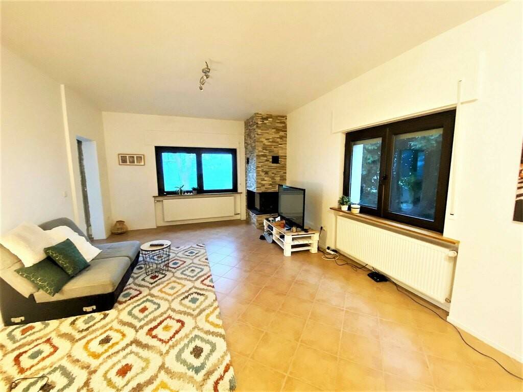 RDCH: - Grand hall d'entrée - Cuisine équipée avec accès véranda - Salon et salle à manger - Véranda avec belle vue sur les champs et accès jardin et terrasse - 2 chambres à coucher - 1 salle de bains avec WC - 1 WC séparé