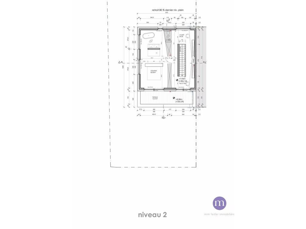 2ème étage: suite parentale avec salle de bains, cage d'escalier et palier