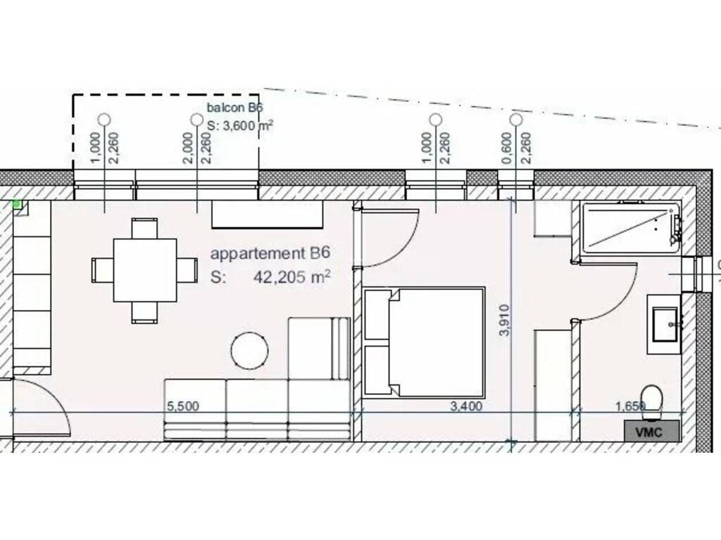 L'appartement B6 offre une surface habitable de 42,20 m² et se compose comme suit :