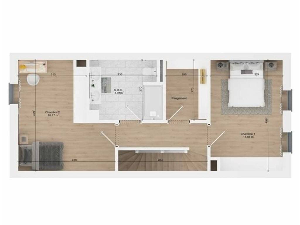Cet appartement, avec entrée séparée, offre un hall d'entrée avec WC séparé, un séjour lumineux avec cuisine ouverte de 47m² et une buanderie. À l'étage, deux chambres spacieuses (15 et 18m²), une salle de bain. Ce bien bénéficie également dune terrasse orientée sud-est et d'un jardin privatif. Emplacements de parking extérieurs en supplément.