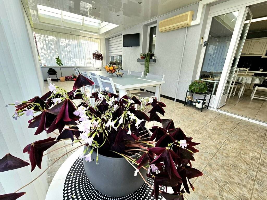 -une pièce de vie ouverte avec cuisine équipée donnant sur la véranda de 35m2