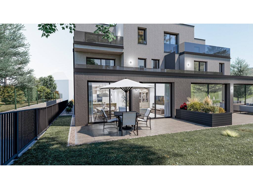 Konrath is offering for sale this apartment in the new OTIUM Residence in Steinsel. Construction is scheduled to start in early 2026. The project features contemporary, uncluttered and elegant architecture. Large bay windows provide plenty of natural light, while outdoor spaces naturally extend the living areas. Located on the ground floor, apartment N°2 boasts a beautiful terrace and a generous private garden, ideal for enjoying a peaceful, green living environment.