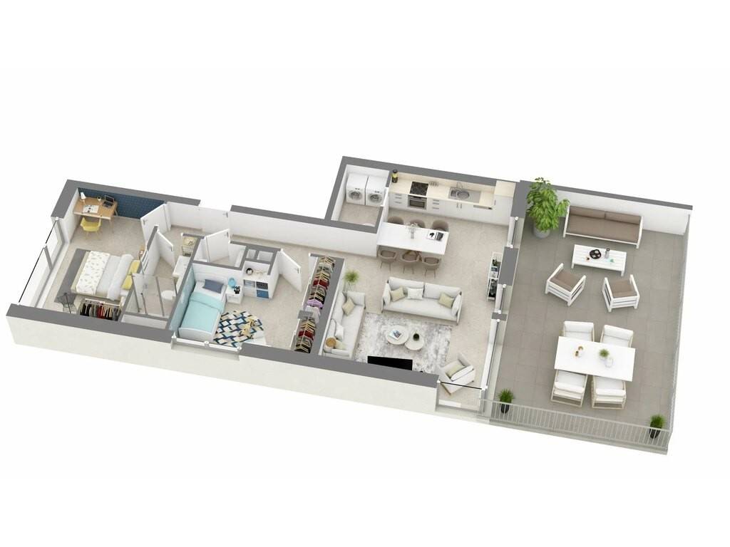 - Appartements de 2 à 3 chambres, de 70 m² à 130 m²