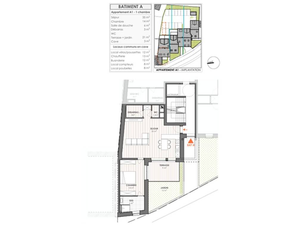 A bright apartment (A1) with a living area of +/- 65 m2, a terrace of +/- 10m2 and a private garden of 12m2.