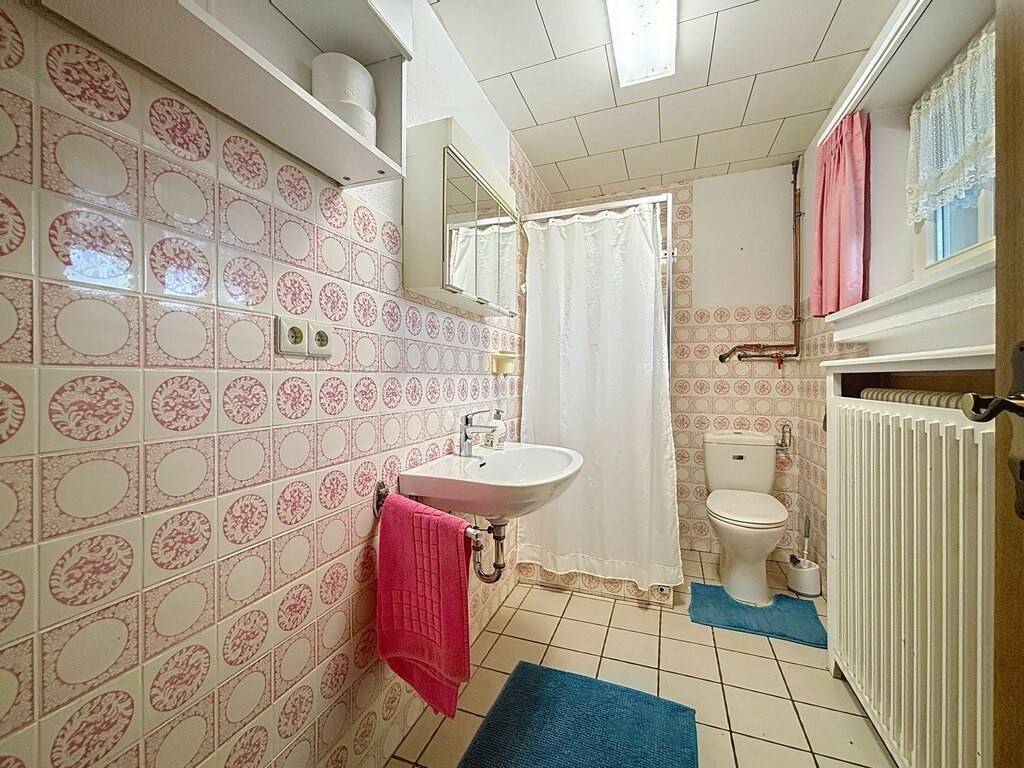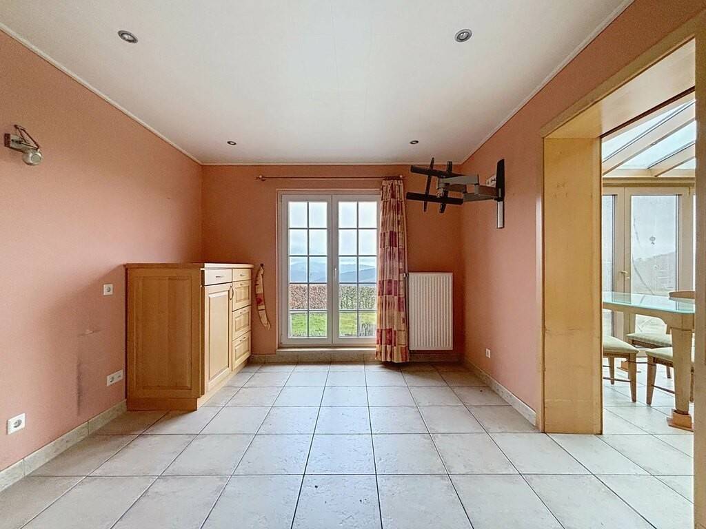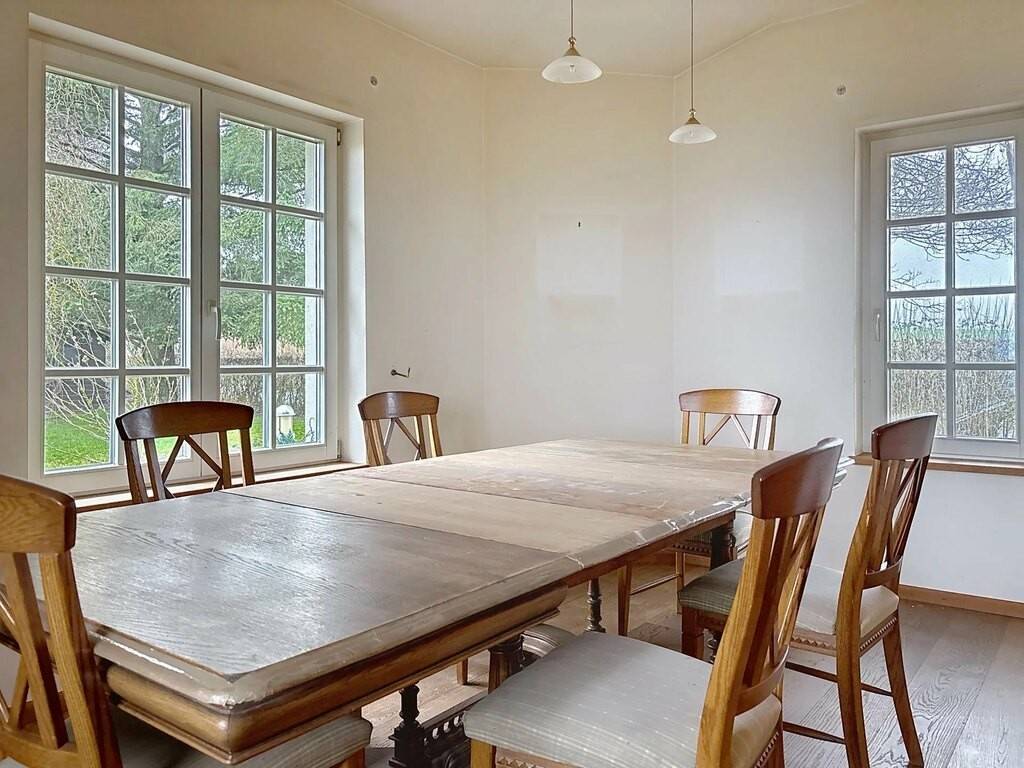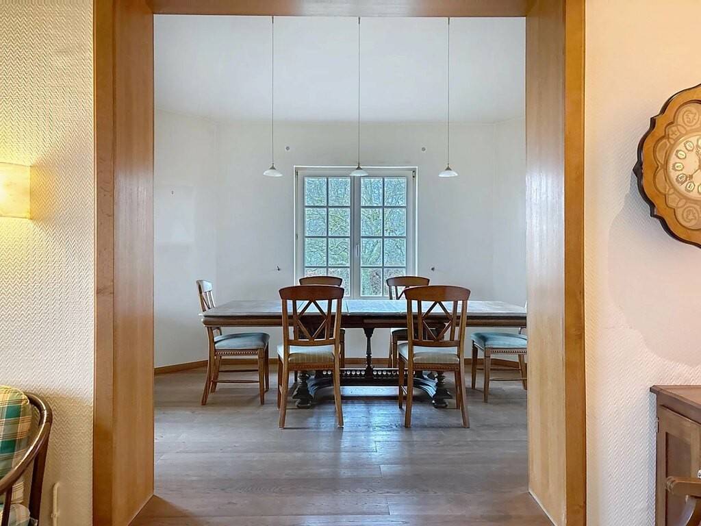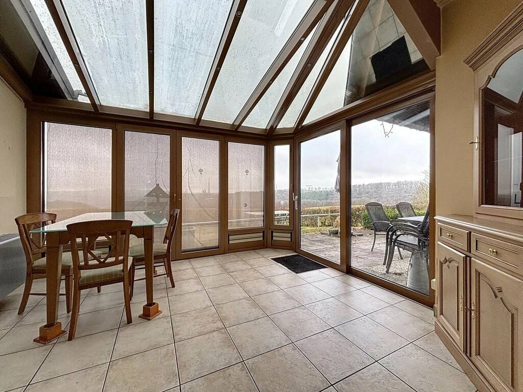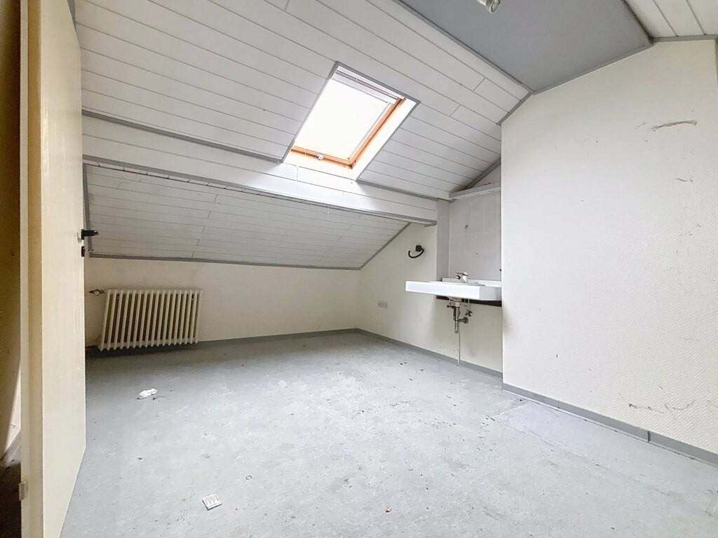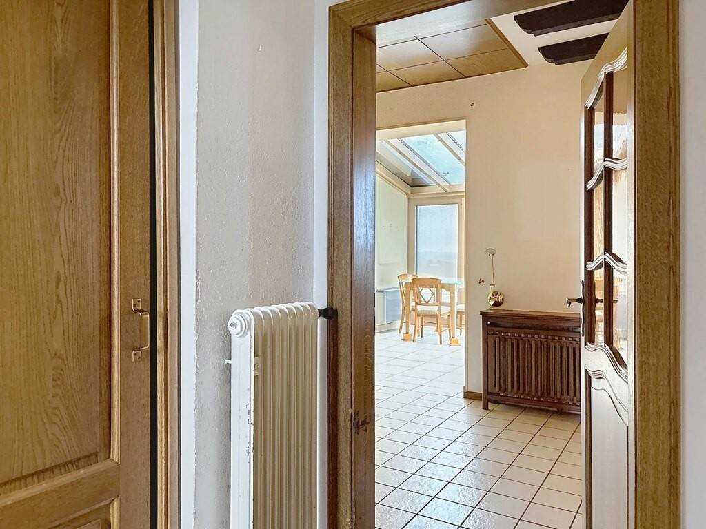Le rez-de-chaussée accueille un hall d’entrée, une petite kitchenette, un spacieux living de 38 m² avec feu ouvert, une véranda lumineuse, une chambre à coucher ainsi que deux salles de bains. Une terrasse d’environ 30 m² prolonge agréablement les espaces de vie vers l’extérieur. Les combles offrent une chambre mansardée de 15 m², idéale comme chambre d’appoint ou espace bureau.